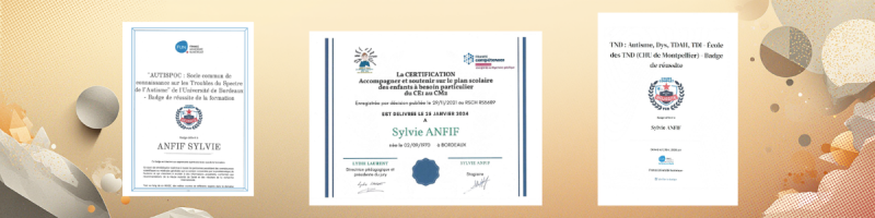 J’ai également beaucoup appris auprès de professionnels de l’enseignement spécialisé, ce qui m’a permis de mettre en place un suivi efficace et progressif. Cet accompagnement les a conduit à l'obtention de diplômes d'études supérieures de niveau 6. Le succès de ces parcours m’a donné l’envie profonde d’enseigner, de transmettre et d’accompagner les parents souvent démunis face aux défis liés aux troubles neurodéveloppementaux.